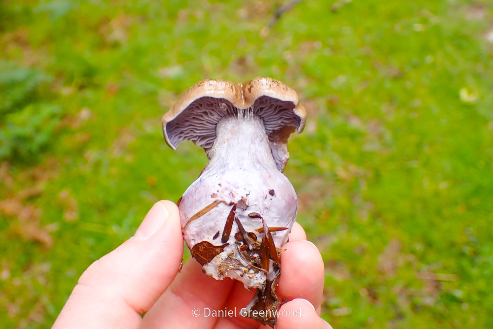 Passing between two plantations on a grassy ride in the New Forest, I noticed this uprooted mushroom on the ground.