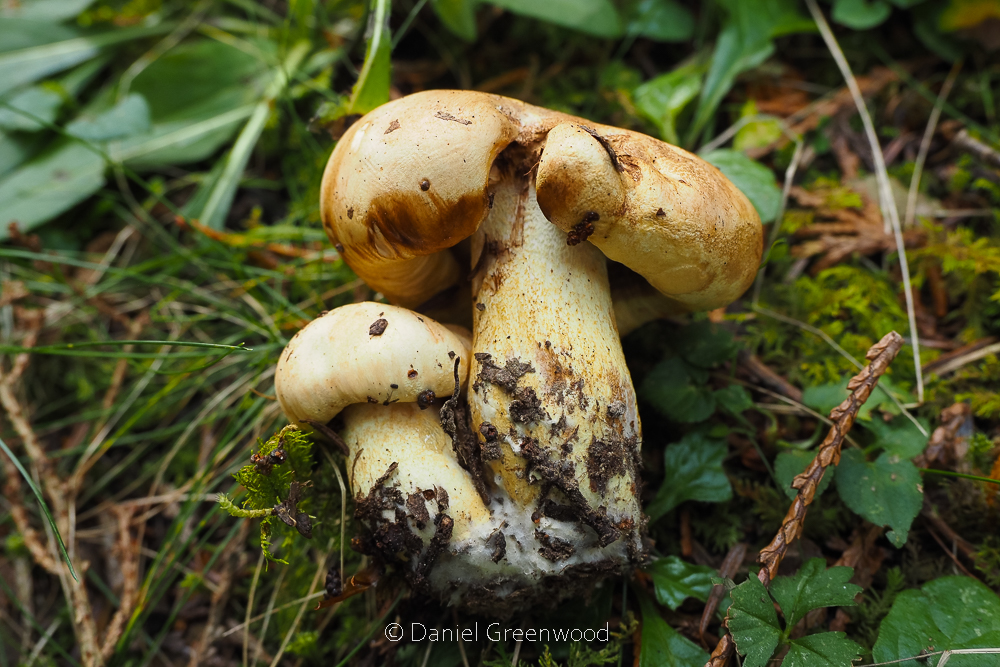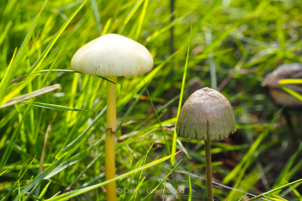 It’s easy enough to plop these mushrooms into the ‘dungi’ category, and suspect that they’re mottlegills (Panaeolus). I’m half suspicous that the pale-capped shroom is a yellow fieldcap, rather than a saturated older fruiting body, just hanging out in the dung.