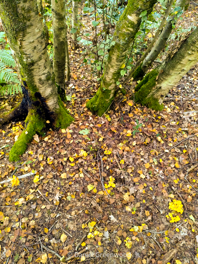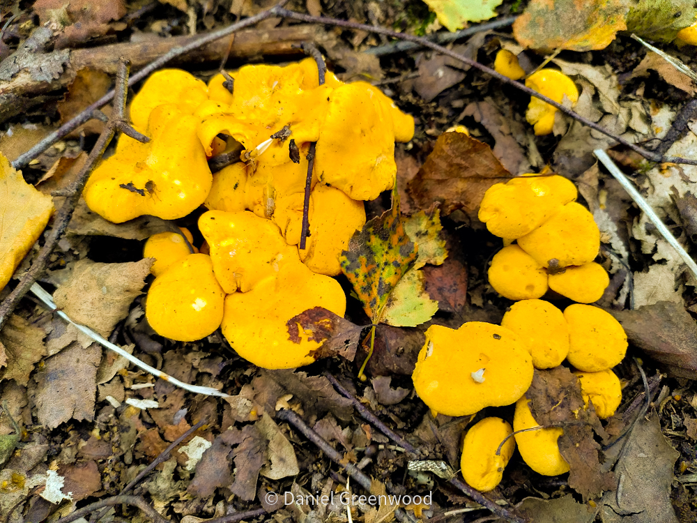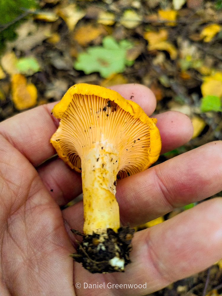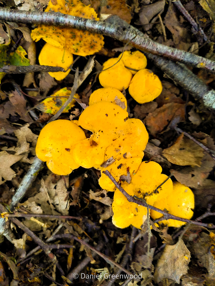 But then we found ourselves in a quiet part where birch trees were dropping yellow leaves among crab apples. I noticed a patch of yellow that wasn’t quite in keeping with the surrounds and went for a better look. It was a pleasant surprise to find a large smattering of chantarelles.