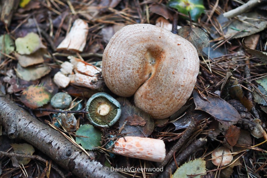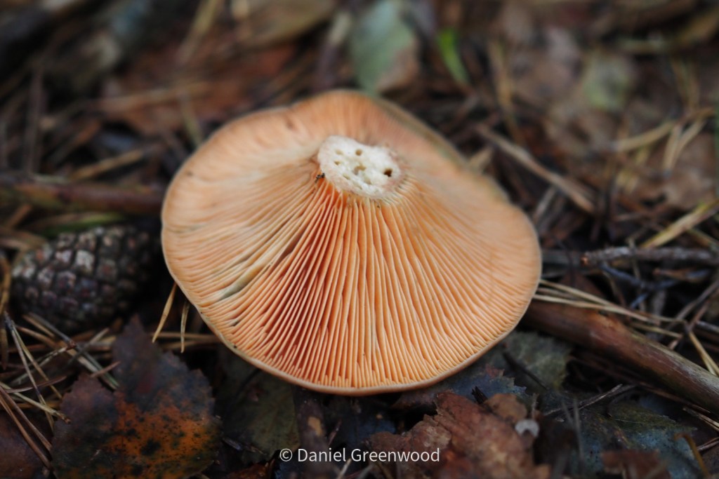iNaturalist’s fungi community have come back with an ID of Lactarius sect Deliciosi. I was interested to see how many had been cut with a knife and the stipes left, which you can see in the top left image. People were obviously foraging them for the pot. I would like to spend more time getting to know milkcaps and building my confidence in their ID.