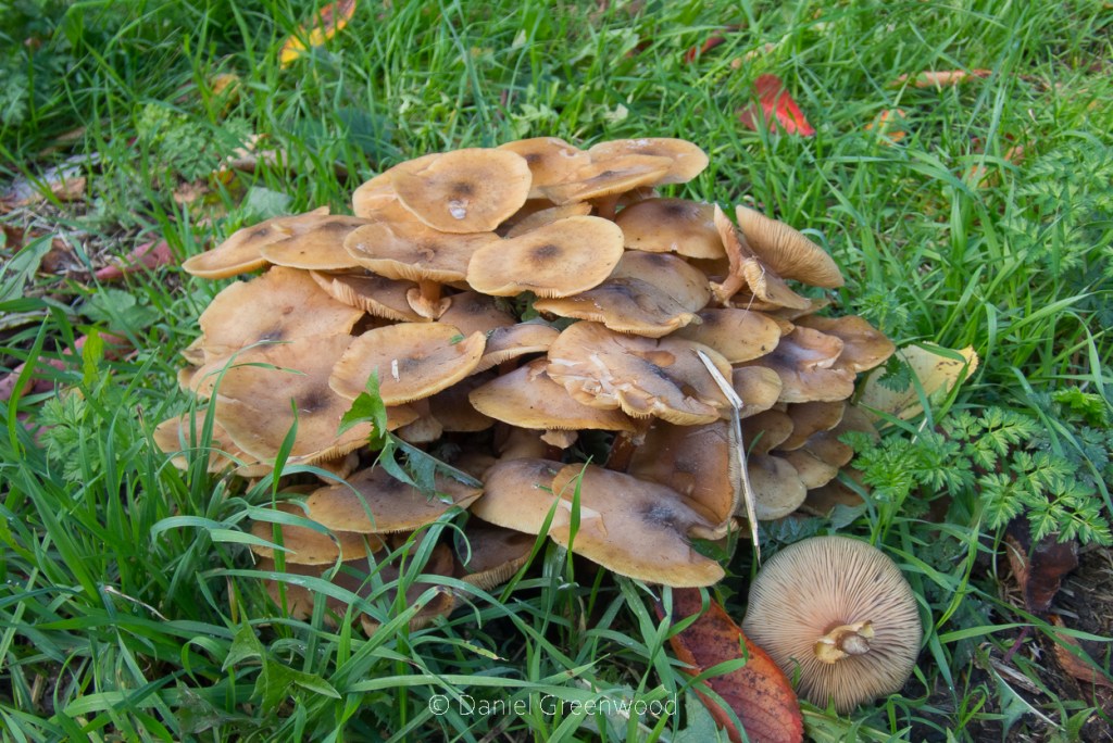 Honey fungus can be a tricky one to predict. Sometimes it can pop up quite early in the season, but in recent years I’ve seen the first fruiting bodies later in the autumn. This year is an example of that.