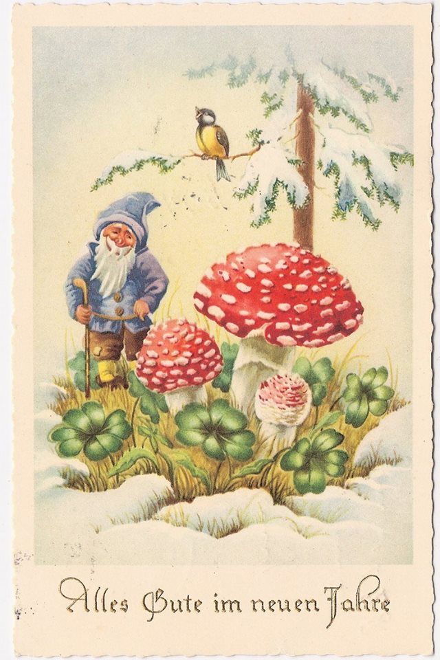 Please enjoy these (mostly German) fly agaric-focused Christmas and New Year’s cards: