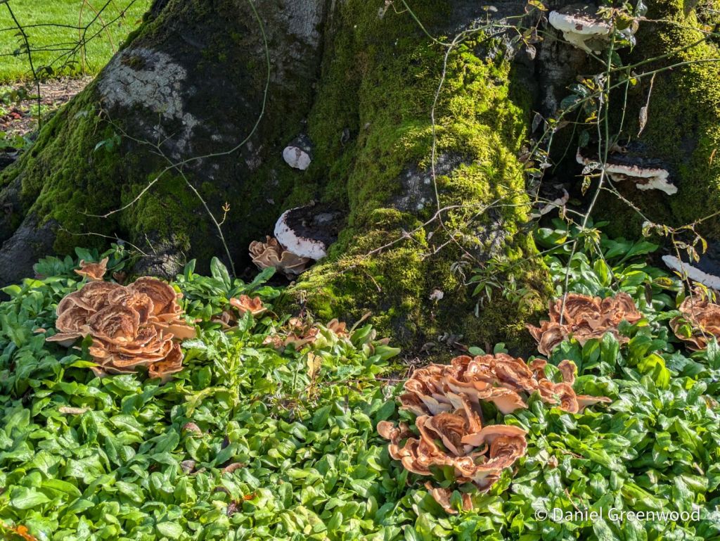 This specimen (expecting that it’s from one underground mycelium) is a riot of polypores.