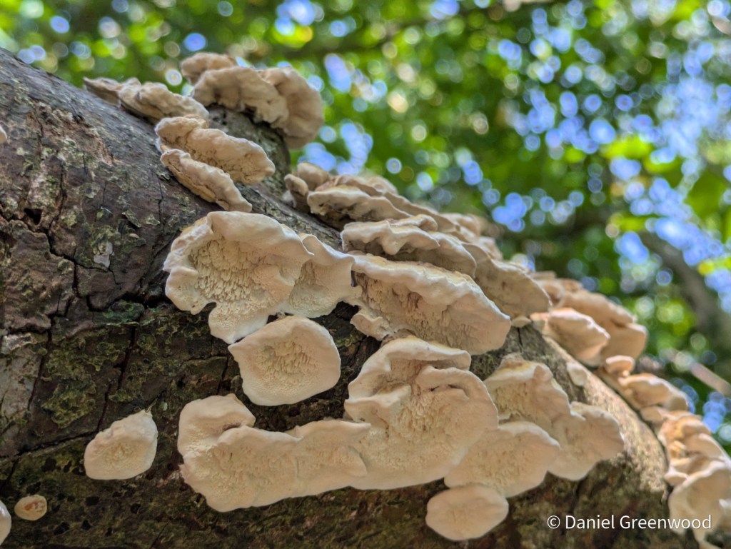 I love the blue hue found on some variations of turkey tail. Of course they’re at their best in the autumn when there’s more moisture in the air. The iNaturalist graph shows these are actually the months of the fewest observations for turkey tail.