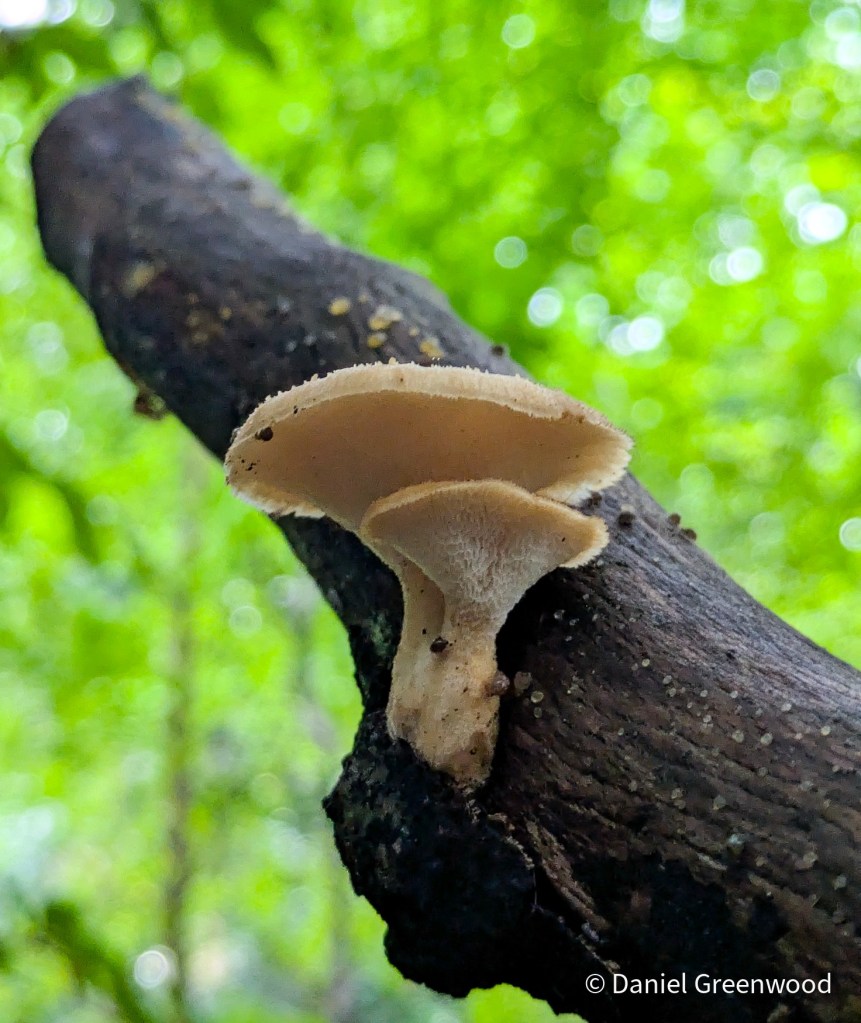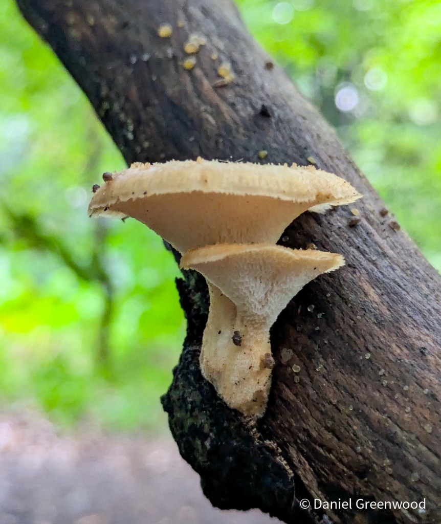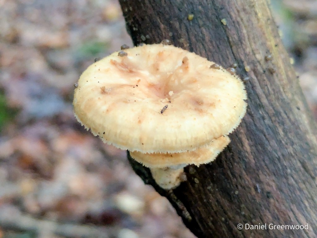 This was a quite optimistic walk around a large area of ancient woodland and pine plantation. It was a struggle to find anything, but this was the first thing I saw, growing on a fallen beech branch. My best guess on this is tuberous polypore, which I’ve never seen before. Looking back at these pics I was amazed at how many springtails there were on the cap! The pics above are a mix of phone and mirrorless camera with macro lens.