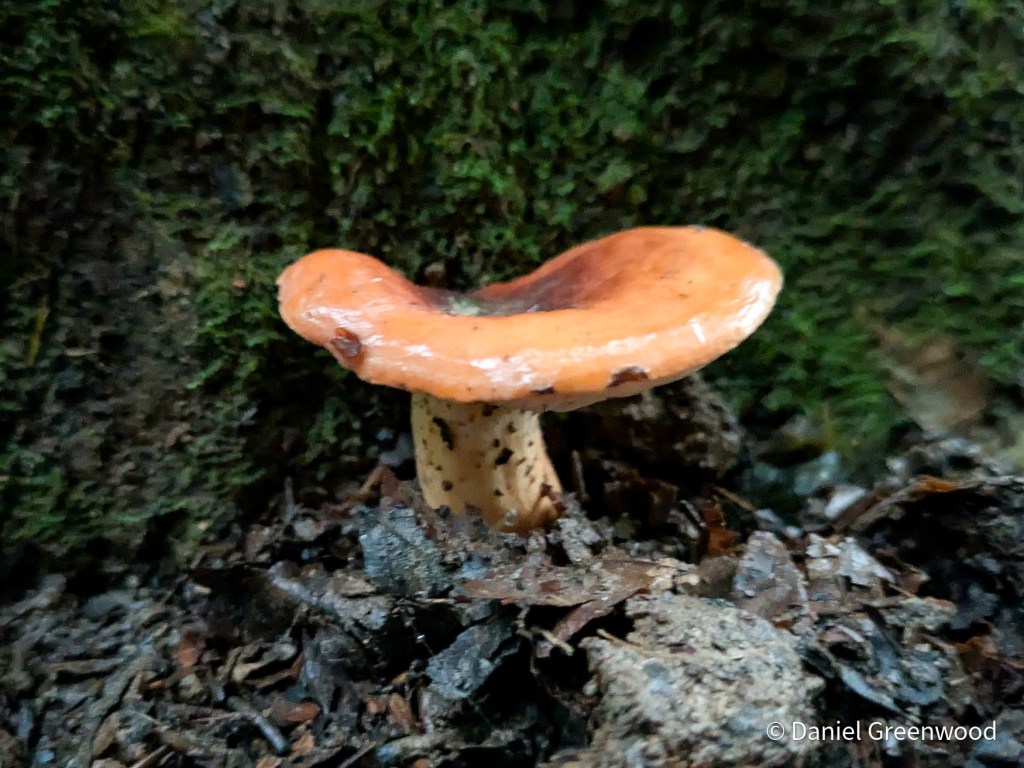 On my way out of the woodland I noticed this lovely brittlegill/russula. I’m not close to getting this to species level, as it requires tasting and spore examination in the least!