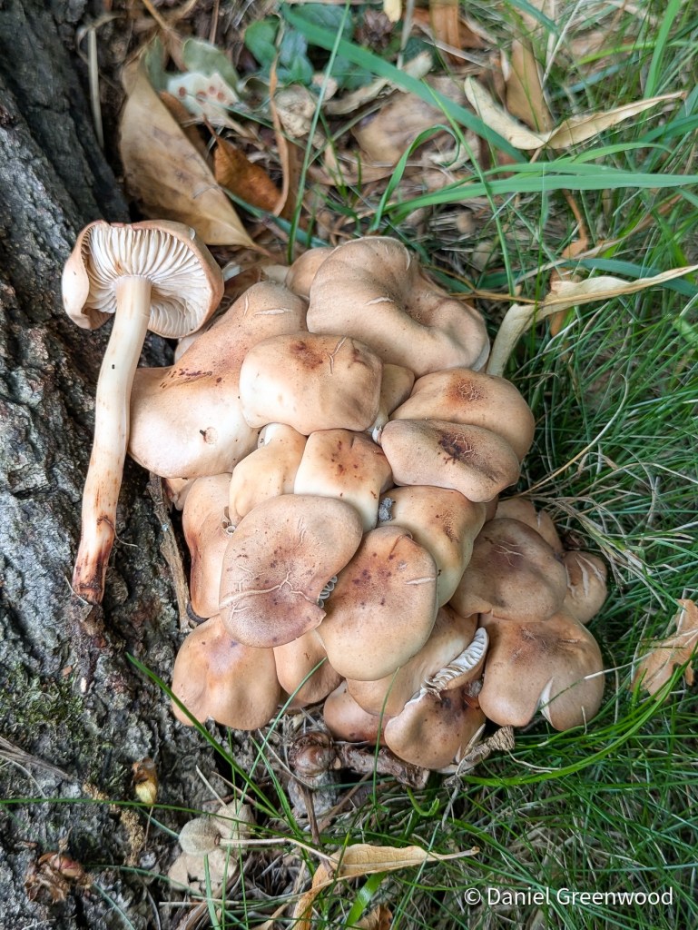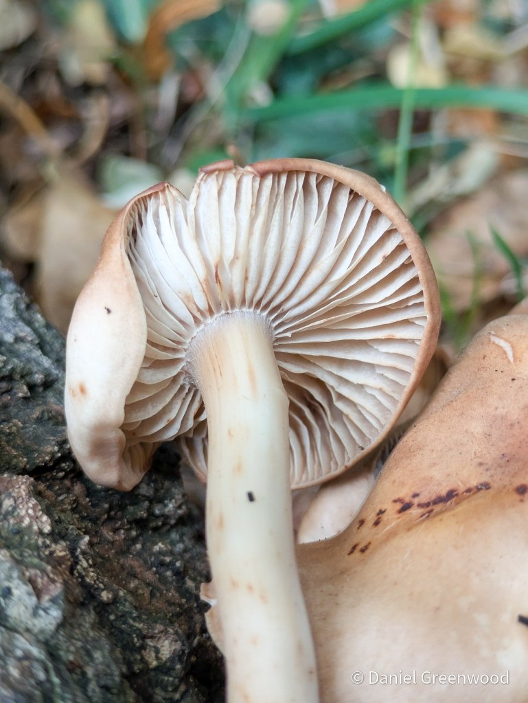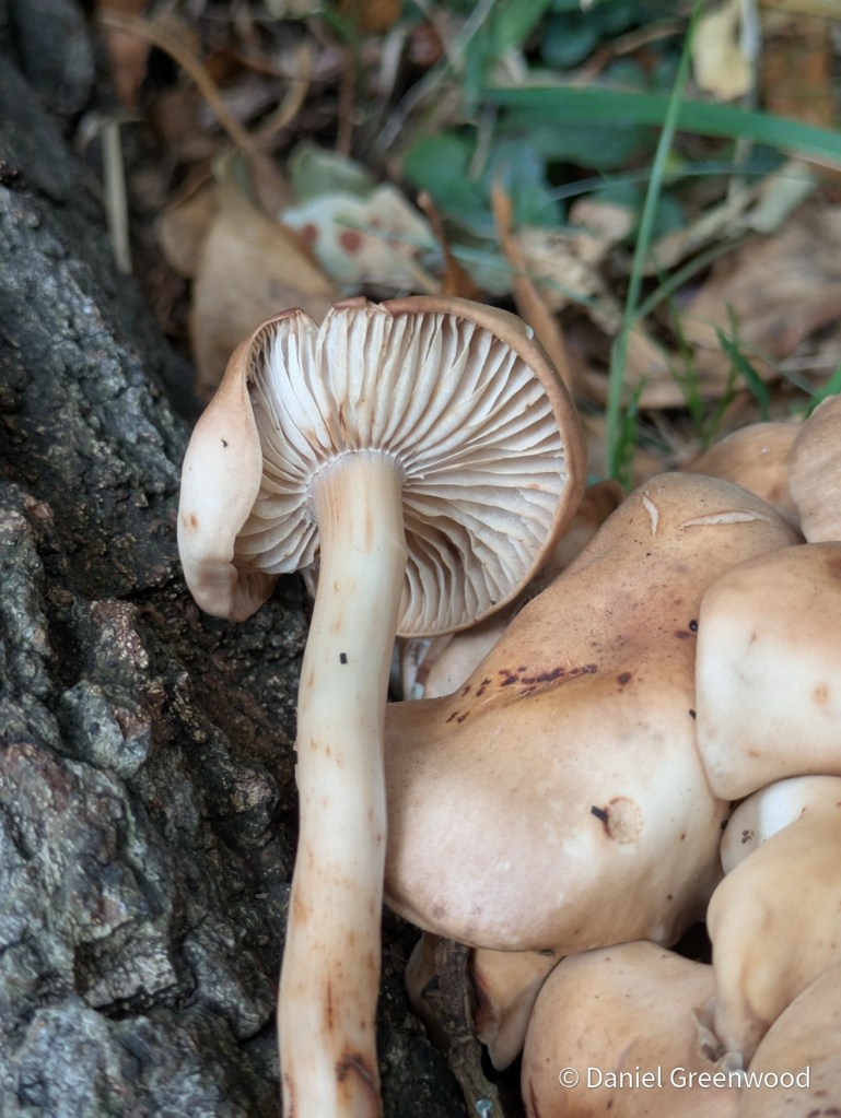 Spindleshank is a species I’ve learned through woodland management. It often appears at the buttresses or where roots meet the soil at the base of large oak trees. Often the trees will be suffering root damage, almost always from human impacts like path erosion, roads, car parking, etc. so it’s something to keep an eye on.