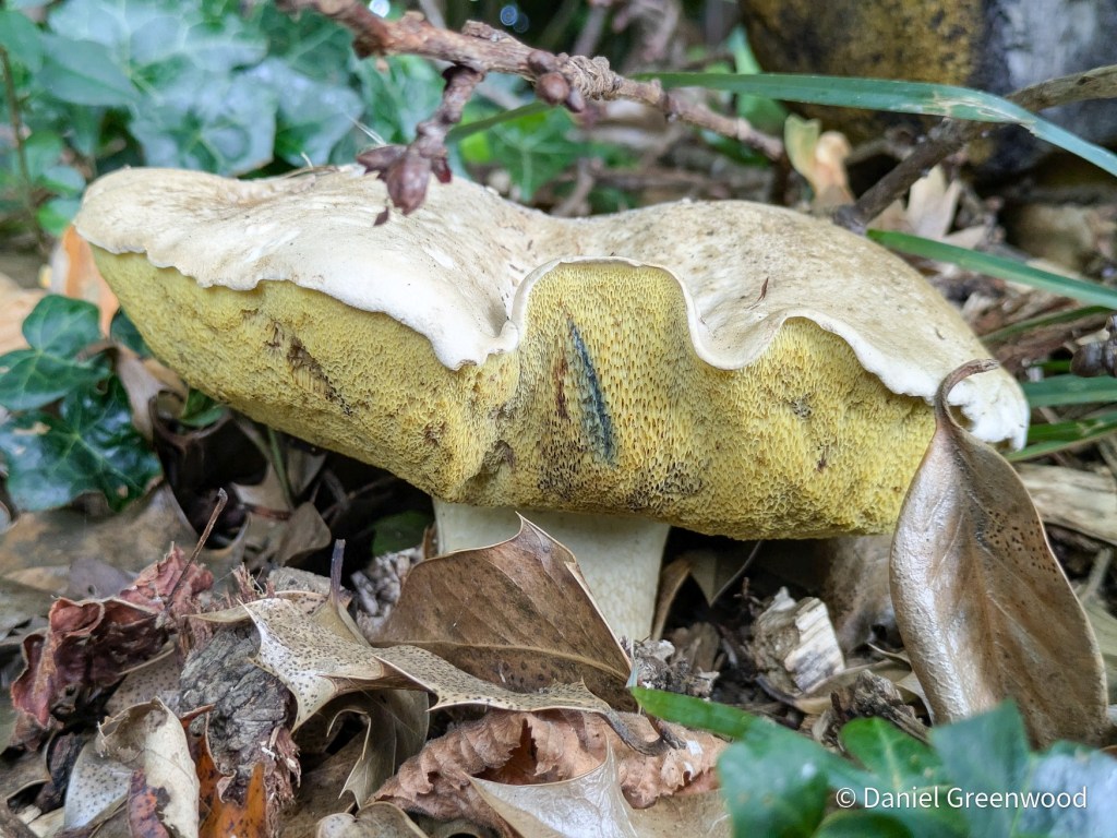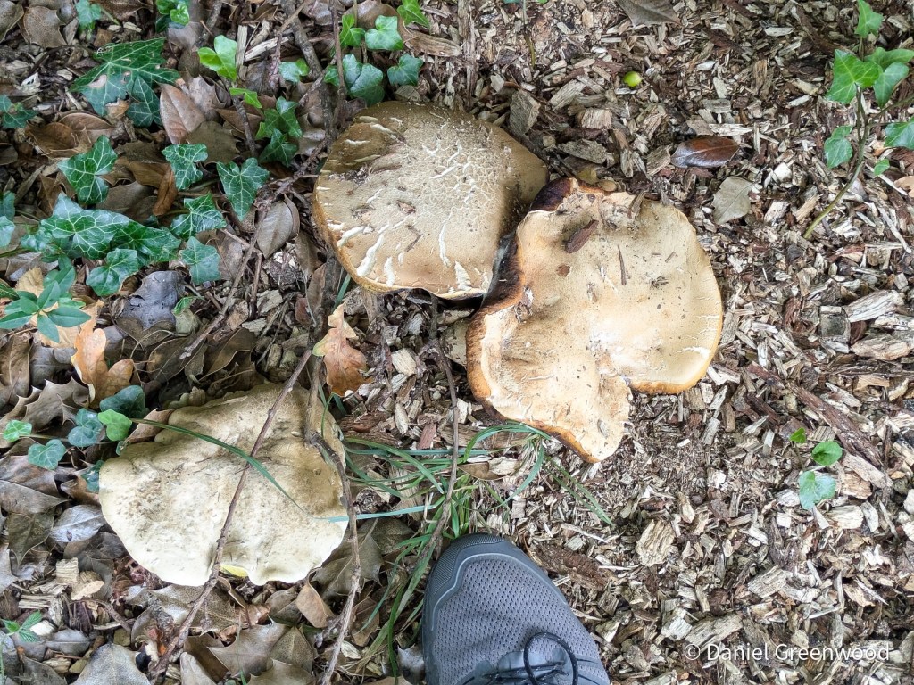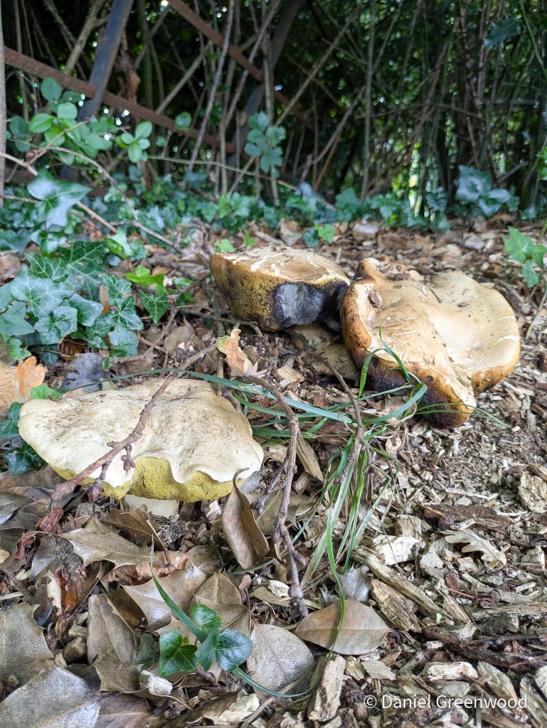 In the grasslands and on a wood chip heap I found these large boletes. As per recent weeks my ID is for rooting bolete, which appears fairly common in the western Sussex Weald.