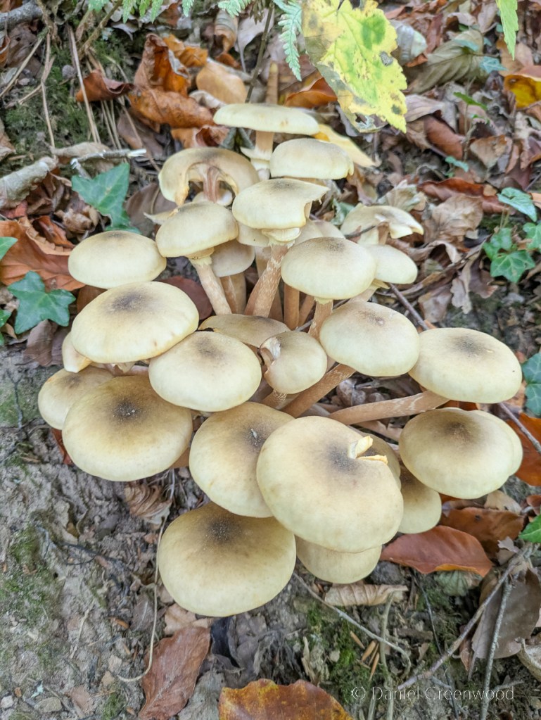 The only other species of honey fungus I snatched a photo of was the honey fungus itself. The stipes are long and sprawling, and the colouring is more honied.