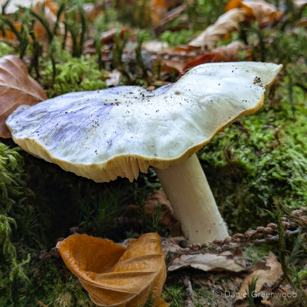 Now this one was very cool. I think Kirsty pointed out that there was a mushroom with a strange discolouration on the cap. I had never seen them before, but they turned out to be blue spot knight (iNat). I honestly thought someone could have painted them!