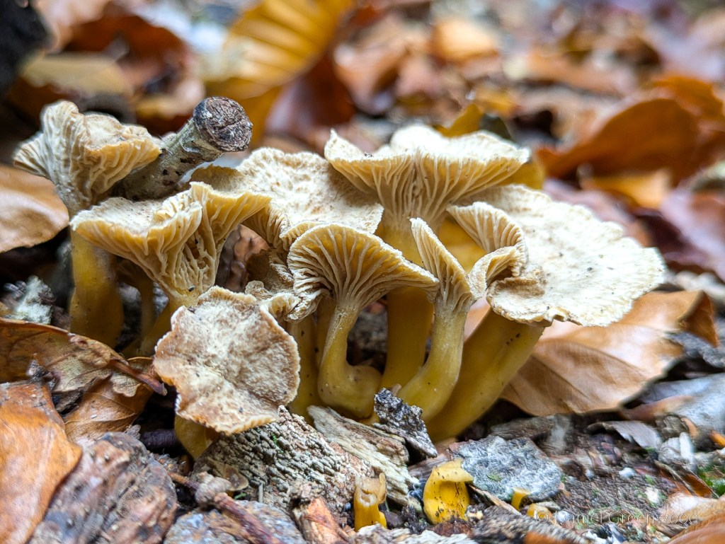 We found a couple of very small chanterelles but this was a larger patch of winter chanterelle. The phone hasn’t done too well with the exposure here.